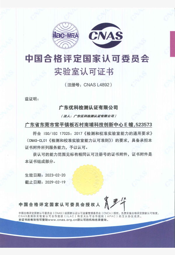 廣東優(yōu)科檢測(cè)認(rèn)證有限公司(簡(jiǎn)稱:UKK)成?于2007年,是國(guó)內(nèi)專業(yè)的汽車整車及零部件、電子元器件第三方檢測(cè)實(shí)驗(yàn)室,國(guó)家級(jí)中小企業(yè)公共(技術(shù))服務(wù)示范平臺(tái),獲得了國(guó)家?新技術(shù)企業(yè)、廣東省專精特新中小企業(yè)、市級(jí)工程技術(shù)研發(fā)中心等榮譽(yù)稱號(hào)。 More
